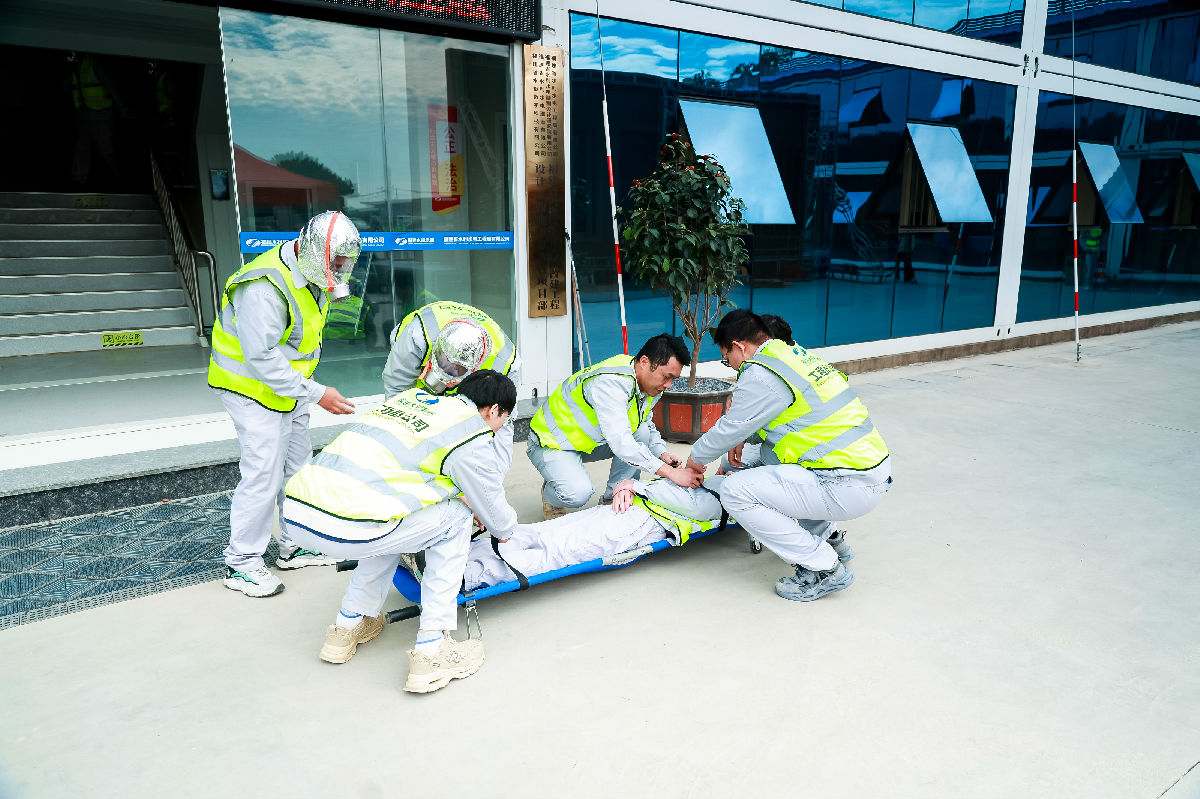 应急演练模拟了火灾发生后的应急响应流程,涵盖人员紧急疏散、伤员现场救护及初期火灾扑救等环节。整个演练过程组织有序、配合高效,全面检验了工程局公司应急指挥体系与员工的现场处置能力。期间,还邀请了龙海区消防官兵为全体参演人员普及消防安全知识,现场指导各类消防器材操作。