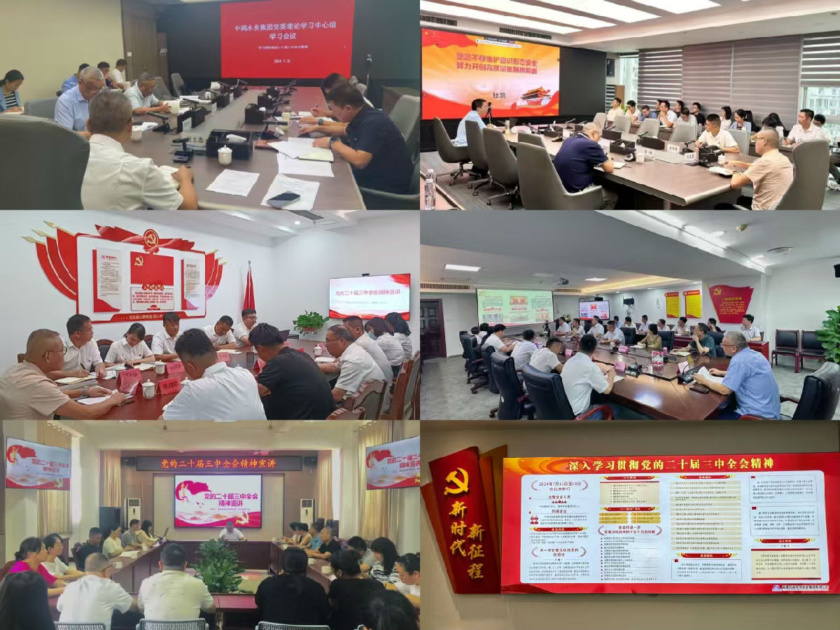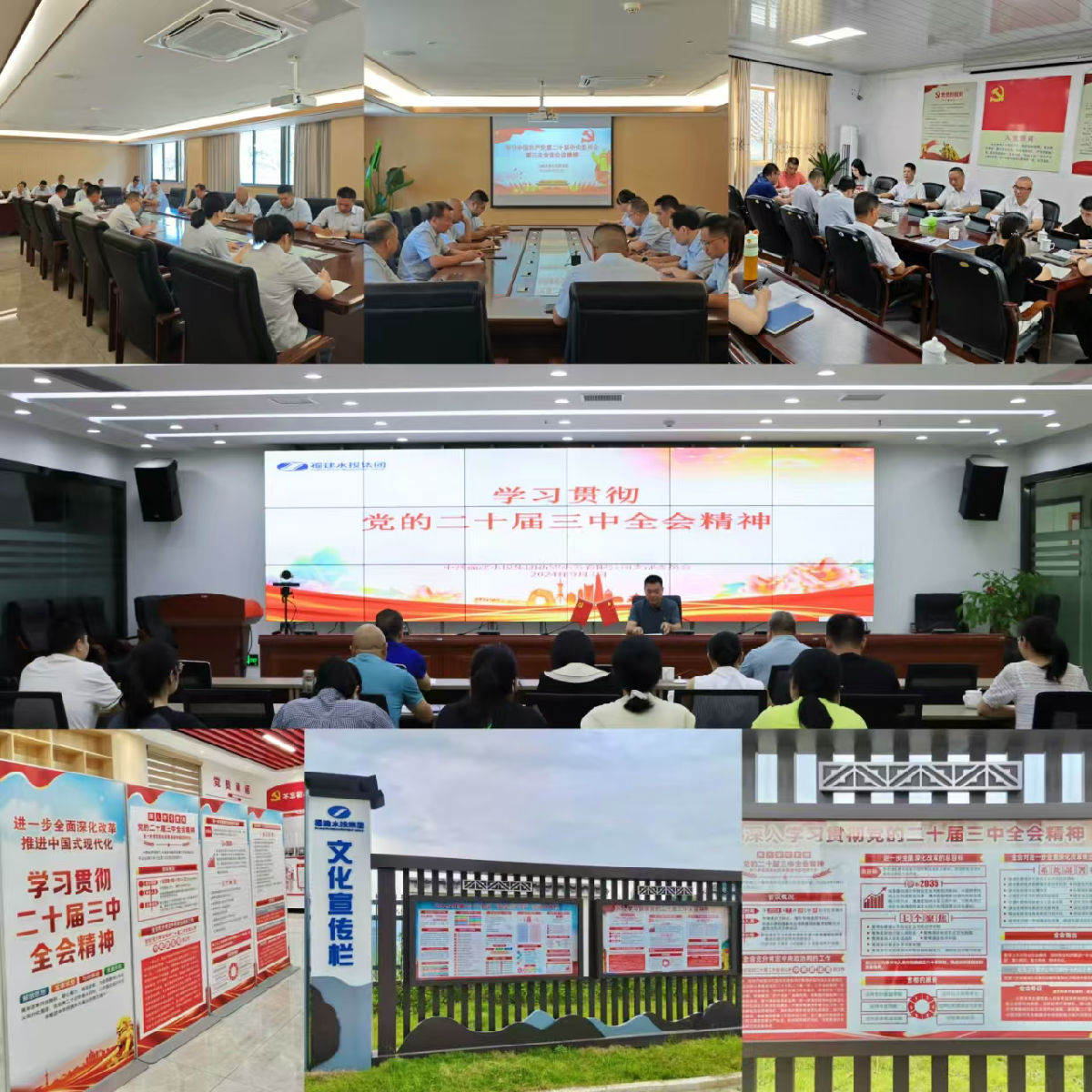 水务发展集团权属企业通过组织专题学习、交流研讨等多种形式,利用线上线下专题宣传栏、党建馆等宣传阵地,深入学习宣传贯彻党的二十届三中全会精神,传达学习《决定》等文件精神。要求全体成员将学习宣传贯彻全会精神作为当前和今后一个时期的一项重大政治任务,推动全会精神深入人心、落地落实,重点围绕城乡供水一体化工作,抓紧抓好重点任务推进落实;持续深化“党旗红引领水投蓝·乡村振兴水优先”党建品牌建设,把学习贯彻成果落在实际行动上,体现在工作成效中。