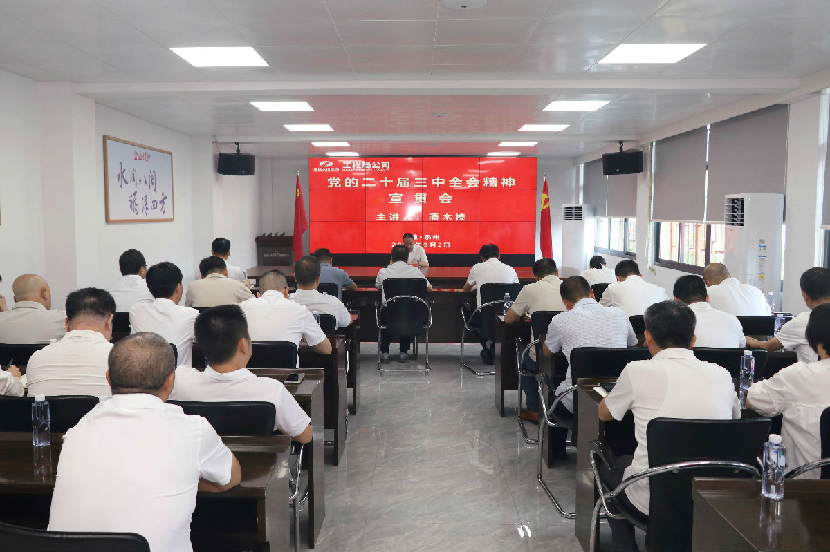 率先垂范,发挥带动作用。7月25日,公司党委理论学习中心组学习(扩大)会,原原本本学习会议公报和《决定》,并结合工作实际深入研讨学习,部署公司贯彻落实措施。融入日常,营造宣传氛围。设立“聚焦二十届三中全会”公众号专栏,转发《人民日报》等媒体解读文章、报道公司宣贯全会精神举措。组织党员职工积极自学,通过逐字逐句领学、交流心得研学、碎片时间自学等方式,持续抓好精神学习。开展宣讲,掀起学习热潮。9月2日,公司党委书记潘木枝采用“现场+视频”形式宣讲党的二十届三中全会精神,要求广大职工增强改革思维,以解放思想、勇于开拓的创新精神,推动各项改革举措落实落地,加快公司高质量发展,培育壮大特级企业优势。